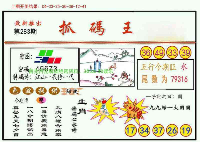 283期:三行生肖╠土水金╣开:鸡45准 |
